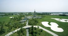 球场--湖景·空间 太阳岛国际高尔夫球场是上海第一个由国际高尔夫球场设计名家Nelson,Wright & Haworth创意设计的36洞高尔夫球场。根据岛上特殊的地理环境,设计成“洞洞沿湖”的特色并结合中国庭院的造景,在打球之余,让视觉也心旷神怡。凭着卓越的建设品质。并于1998年荣获举办富豪中国公开赛(VOLVO CHINA OPEN),1999年获美国高尔夫文摘(U.S. GOLF DIGEST)评选为中国十佳球场。